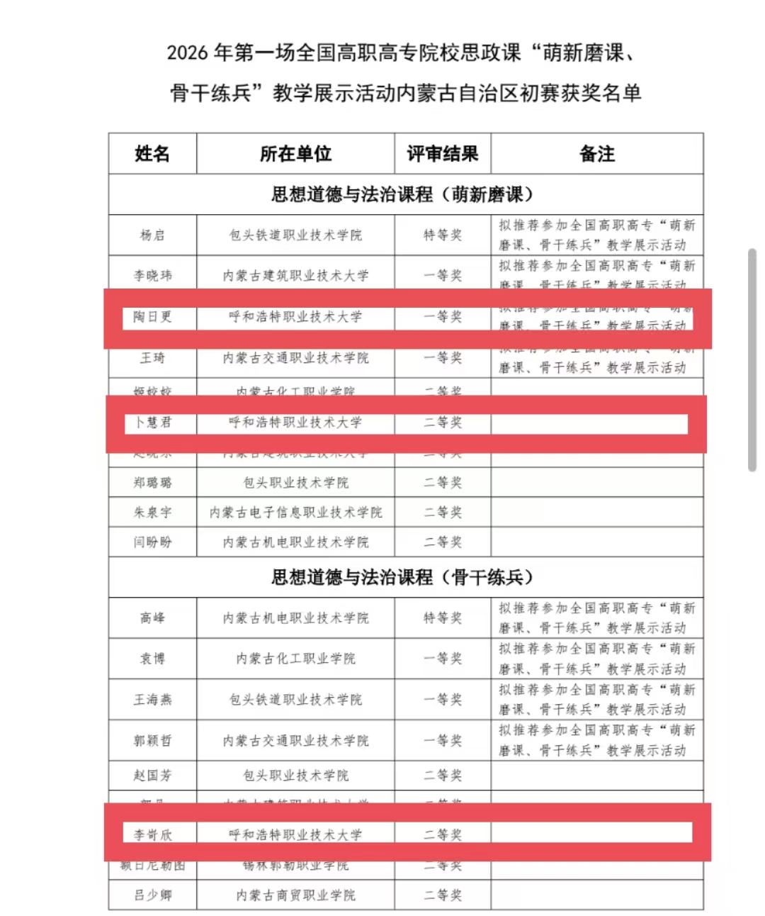 喜报|学校思想政治理论课教师在全区思想政治理论课“萌新磨课 骨干练兵”选拔赛斩获佳绩