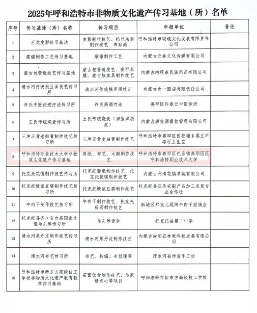 喜报|呼和浩特职业技术大学获评市级非物质文化遗产传习基地