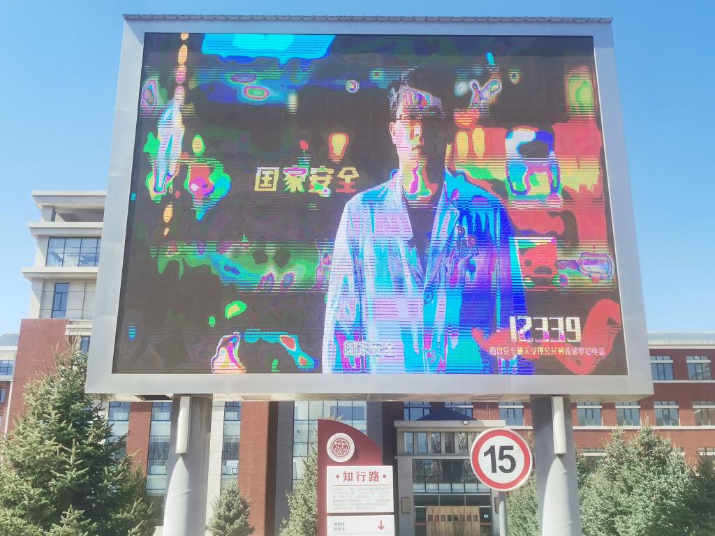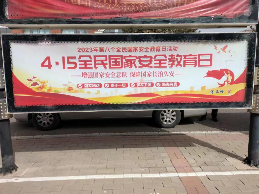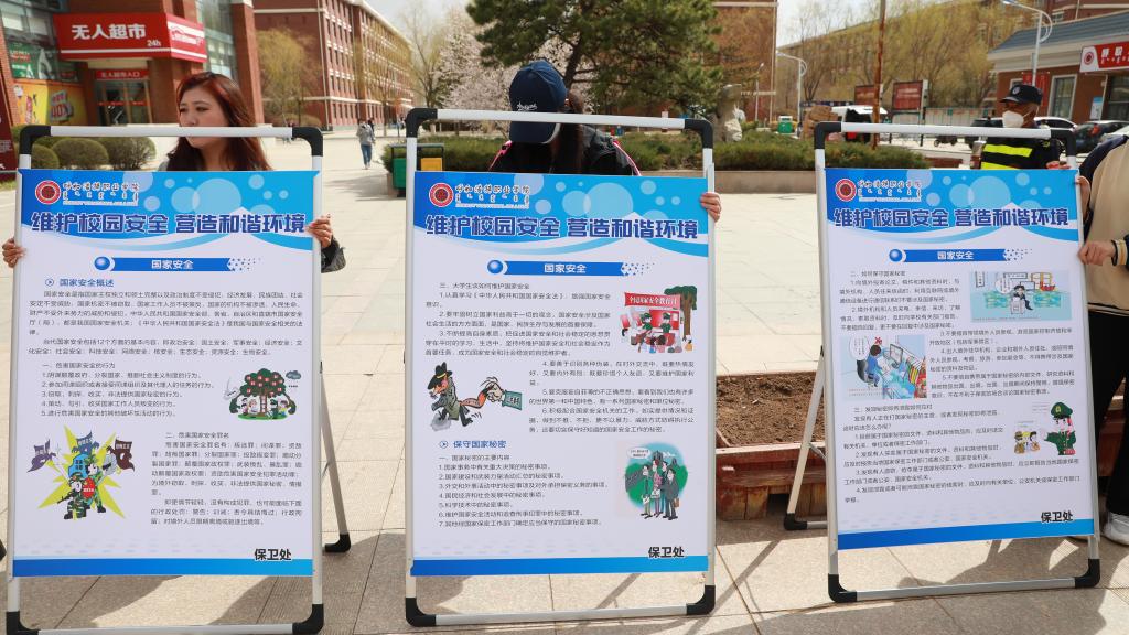 为提高学院师生国家安全意识,保卫处通过更新国家安全宣传栏内容、在各楼宇张贴海报,制作宣传展架,悬挂横幅等宣传形式,发放国家安全教育彩页、在学院LED大屏播放4·15公益宣传片《光芒》等形式,引导师生关注树牢总体国家安全观,积极参与国家安全教育宣传。