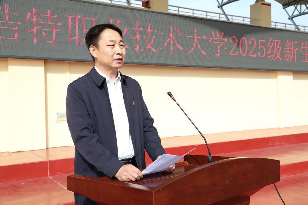 为全面提升2025级新生综合素养,强化安全防范意识风险应对能力,9月11日上午,学校联合中共内蒙古自治区委员会金融委员会办公室、国家金融监督管理总局赛罕金融监管支局、呼和浩特市金融发展服务中心、呼和浩特市公安局赛罕分局、呼和浩特市公安局交管支队、呼和浩特市赛罕区人民法院等多家单位,成功举办2025级新生校园法治安全教育系列活动。学校党委副书记白海林致辞。