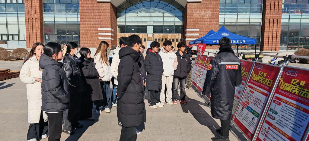 为深入学习贯彻习近平法治思想,推动宪法教育走进校园,增强师生的宪法意识与法治观念,12月4日,保卫处联合团委在真味食府广场组织开展了以“学习宣传贯彻习近平法治思想,推动宪法深入人心”为主题的宪法宣传教育活动。