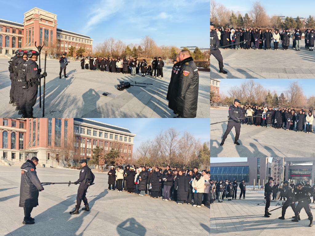 2025年是《中华人民共和国反恐怖主义法》颁布10周年。为切实增强学校应对突发暴力恐怖事件的处置能力,全面提升师生安全防范意识与自我保护技能,根据教育厅《关于做好〈中华人民共和国反恐怖主义法〉颁布10周年宣传教育活动的通知》相关要求,12月17日,赛罕区公安分局反恐怖和特巡警大队应邀走进我校,为广大师生开展了一场反恐技能培训暨反恐处突应急演练。保安人员及学生共同参加了此次培训。