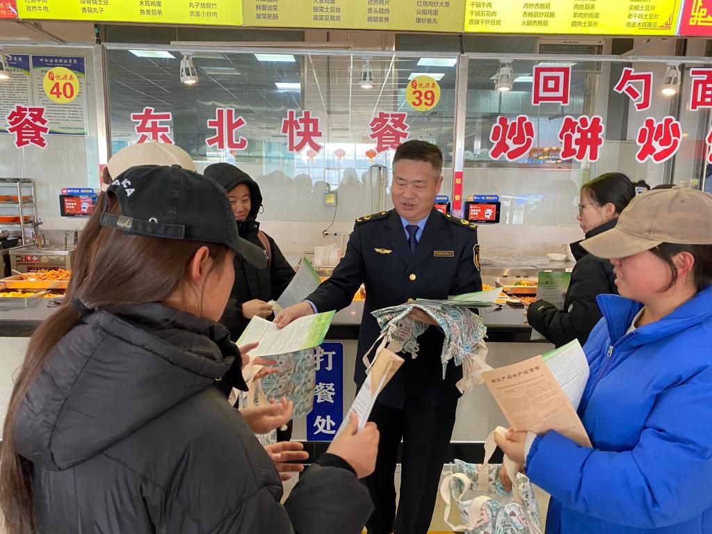 活动中,通过现场讲解、播放农畜产品质量安全科学知识、发放农产品质量安全法宣传资料和守护餐饮安全纪念品等多种形式向广大师生进行了食品安全知识等内容宣传,现场检查了食堂使用的农畜产品台账和农畜产品达标合格证索取情况。倡导师生养成勤俭节约、文明用餐等好习惯,积极参与到食品安全共建共治共享行动当中。