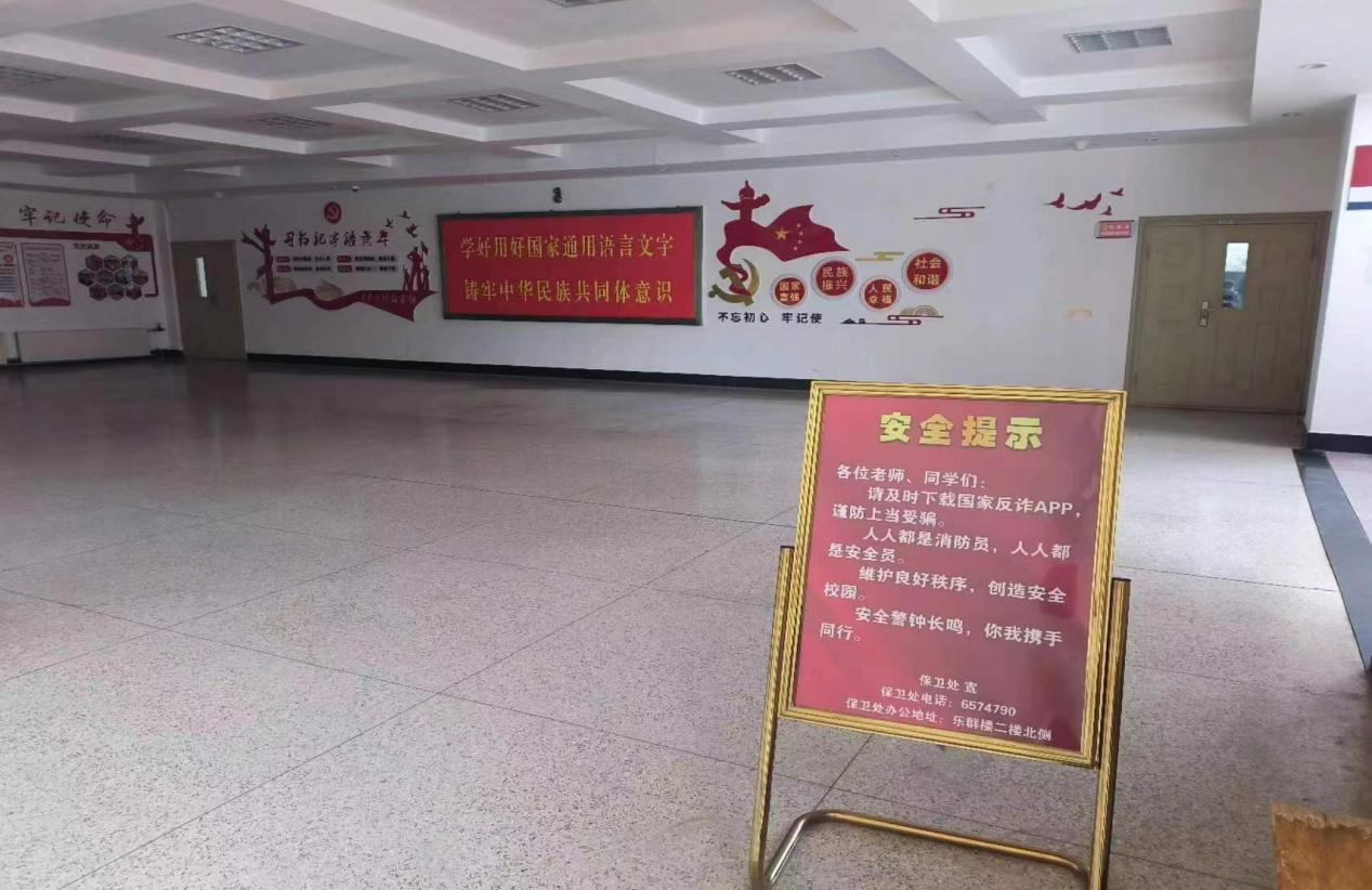 针对师生反映的安全宣传提醒不足和联系保卫处不便问题,保卫处制作了安全提示宣传架,公布保卫处、中专部保卫科联系电话和办公地点,在学院各公共楼宇、中专部各楼宇出入口放置安全提示,让有安全需要的师生能迅速联系到保卫处,校园安全再多一层保障。