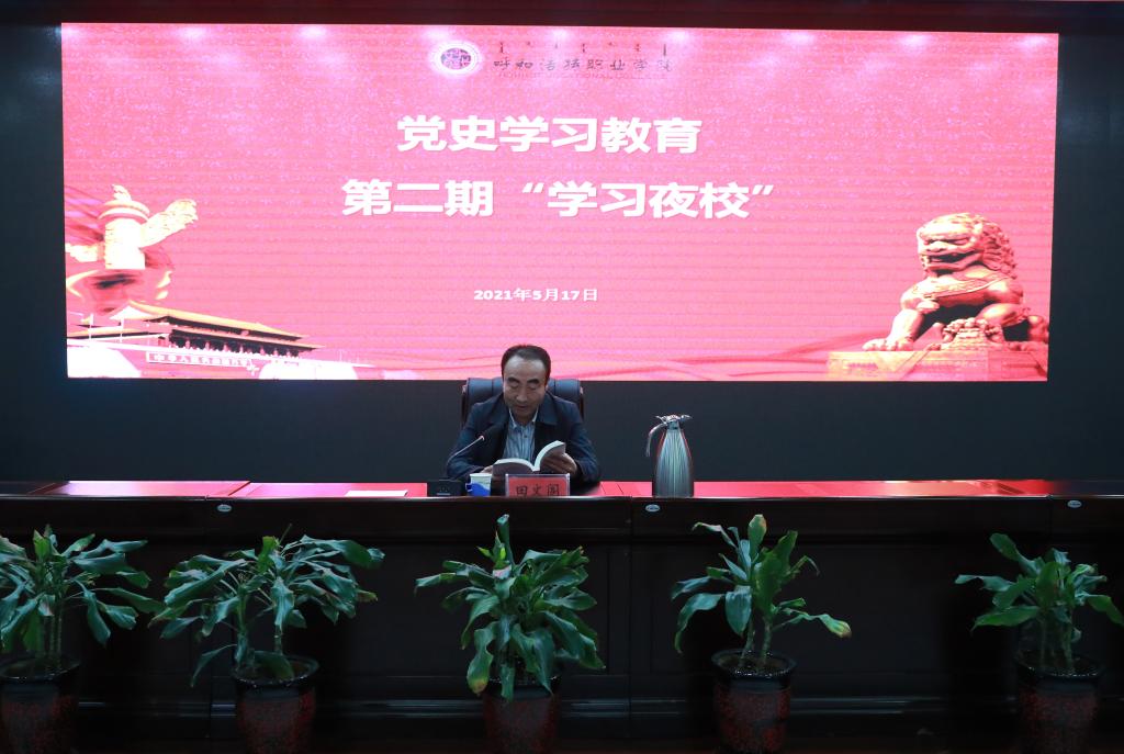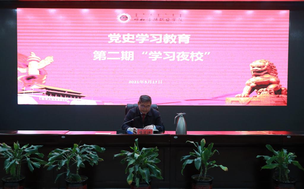 按照学院党史学习教育领导小组工作安排,5月17日晚,学院在明德楼一号会议室举办党史学习教育第二期“学习夜校”。学院党委委员、院领导,全院副处级以上领导干部参加了学习。学习会议由党委委员、宣传统战部部长刘惠华主持。