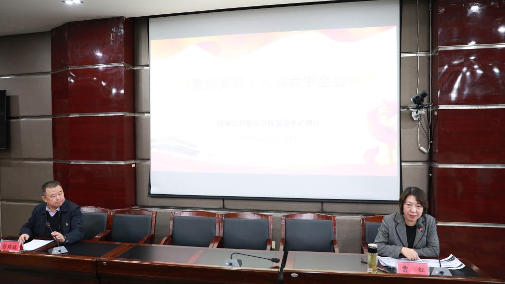 张瑞斌主任要求大家要认真学习领会曹红书记的宣讲报告,并就进一步抓好贯彻落实提出三点要求:一是要把学习宣传贯彻全会精神作为当前和今后一个时期的一项重要任务,推动全会精神深入人心。二是要把学习全会精神与学习贯彻习近平新时代中国特色社会主义思想、党史学习教育、自治区第十一次党代会精神、呼市第十三次党代会精神深入结合,推动全院党史学习教育进一步深化拓展。三是要把学习全会精神同落实自治区第十一次党代会、呼市第十三次党代会确立的目标任务结合起来,同学校推进提质培优、双高建设、本科院校建设发展目标任务结合起来,切实把学习成果转化为助推学校高质量发展的实际行动。