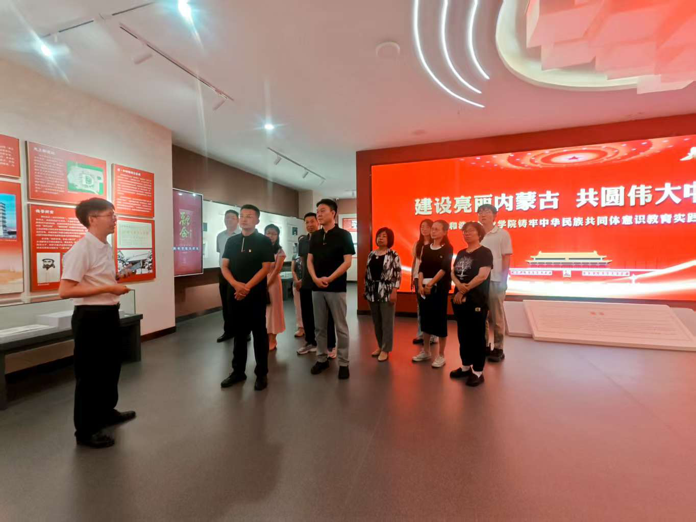 随后,联合支部党员参观了学院铸牢中华民族共同体基地,对我国各民族交往交融、共同发展的历史有了更深的认识,进一步理解了中华民族共同体意识蕴含的深层意蕴,中华民族共同体蕴含着统一安定、团结安宁、开放包容、中正和平的内涵,是各民族人民共同坚守的理想信念,每位党员要将中华民族共同体意识内化为精神追求、外化为自觉行动,将学习体会融于工作中,传承优良精神,做好本职工作。