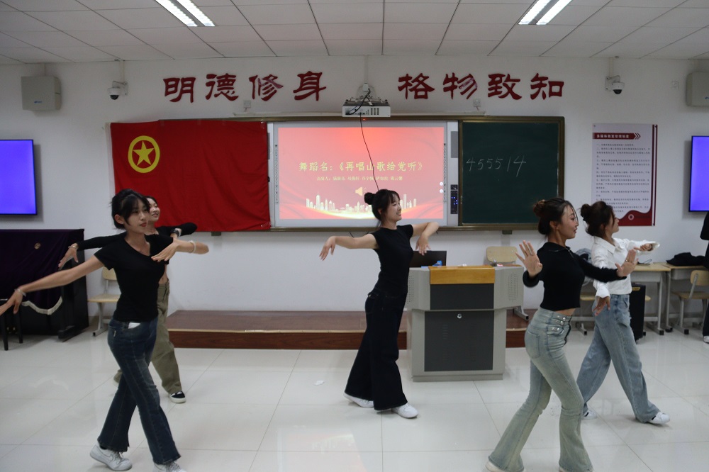 活动伊始,团总支副书记张靖宇带领大家集体学习了习近平总书记关于加强和改进民族工作的重要思想,阐述了民族团结的深刻内涵与时代意义,引导同学们深刻理解“像石榴籽一样紧紧抱在一起”的生动比喻。在交流分享环节,学生们踊跃发言,结合自身经历,探讨了新时代大学生在促进民族文化交融、打破偏见误解中的青春责任与担当。大家一致认为,应以开放包容的心态,争做民族团结的践行者,共同绘制绚丽多彩的青春画卷。在活动中还穿插了舞蹈《再唱山歌给党听》,歌曲以深情的旋律和真挚的歌词,表达了全国各族人民对中国共产党的深厚感情和坚定拥护。活动还设置了紧张有趣的民族团结知识问答环节,内容涵盖民族政策、法律法规及“三个离不开”思想等。