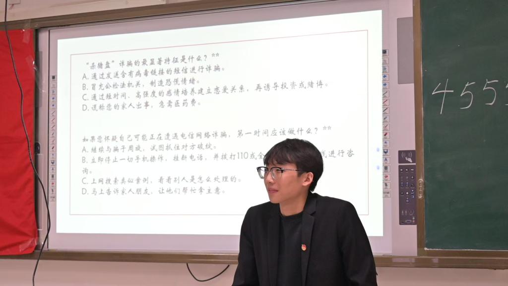 活动中,大家一同观看了反诈宣传片,通过典型案例剖析,详细了解了刷单返利、冒充客服、冒充公检法、“杀猪盘”等当前高发的电信网络诈骗类型与常见骗局的作案手法和识别要点。活动主持人呼吁大家要树牢“不轻信、不透露、不转账、多核实”的防范原则,并介绍了“国家反诈中心”APP的核心功能的使用方法。在随后的互动问答环节,同学们就“接到可疑客服电话如何处理”“如何识别虚假投资平台”等问题进行了深入讨论和模拟应对,现场气氛热烈。