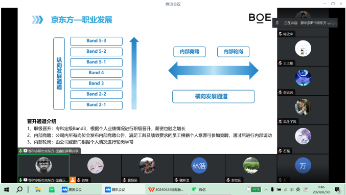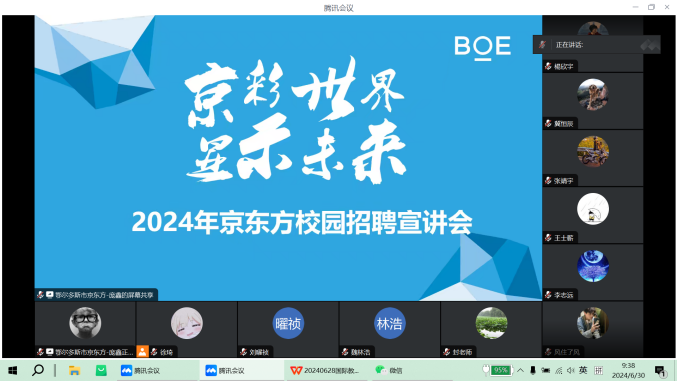 首先,鄂尔多斯市源盛光电有限责任公司(京东方)招聘经理庞鑫对公司进行视频导入介绍,并从公司简介、职业发展、薪资福利等方面为同学们展开详细讲解。他提到,作为一家领先的光电科技企业,公司在职业发展方面为员工提供的广阔空间和多元化机会。他提到,公司不仅拥有完善的培训体系,帮助新员工快速融入并提升专业技能,还鼓励员工参与跨部门和跨领域的项目,拓宽视野,积累经验。此外,公司还为员工提供了多样化的晋升通道和职业发展路径,让员工能够根据自己的兴趣和专长选择适合自己的发展方向。