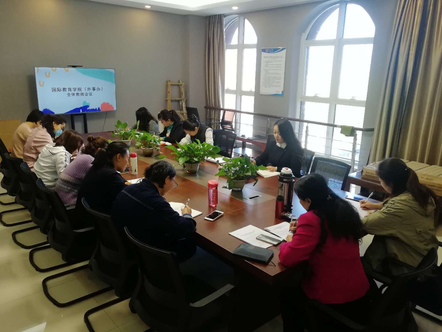 2020年9月25日上午,国际教育学院(外事办)在4号教学楼召开了作风建设自查自纠工作会议,会议由党总支书记李晓静主持,院长谢昌霞以及全体教师参加了本次会议。