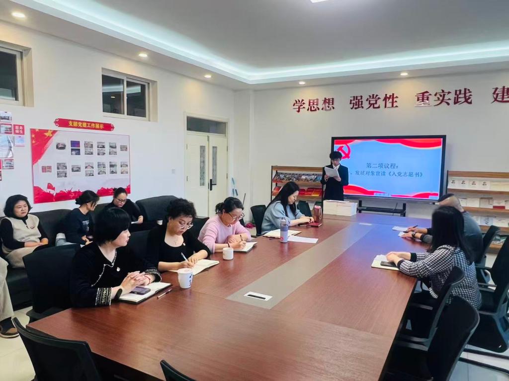 会上,发展对象张靖宇、孙佳慧、李心怡、秦乐四位同志依次宣读《入党志愿书》,向大会全面汇报了各自对党的认识、入党动机个人现实表现四位同志均表达了对党的深厚感情和加入党组织的坚定决心。