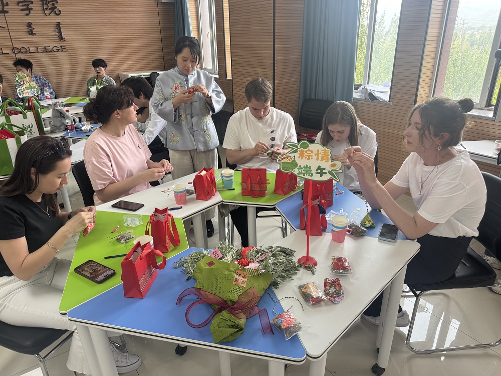 为弘扬中华优秀传统文化,促进中外文化交流,国际教育部于5月28日下午在敏学楼310智慧教室举办了“诗诵情怀,粽香端阳”主题活动。国际教育部党支部书记李晓静,副主任张越,外籍教师安娜、马拉特、娜塔莉娅、齐克桑娜、玛莎与俄语集训班的学生们齐聚一堂,共同体验端午习俗,感受中国传统节日的独特魅力。