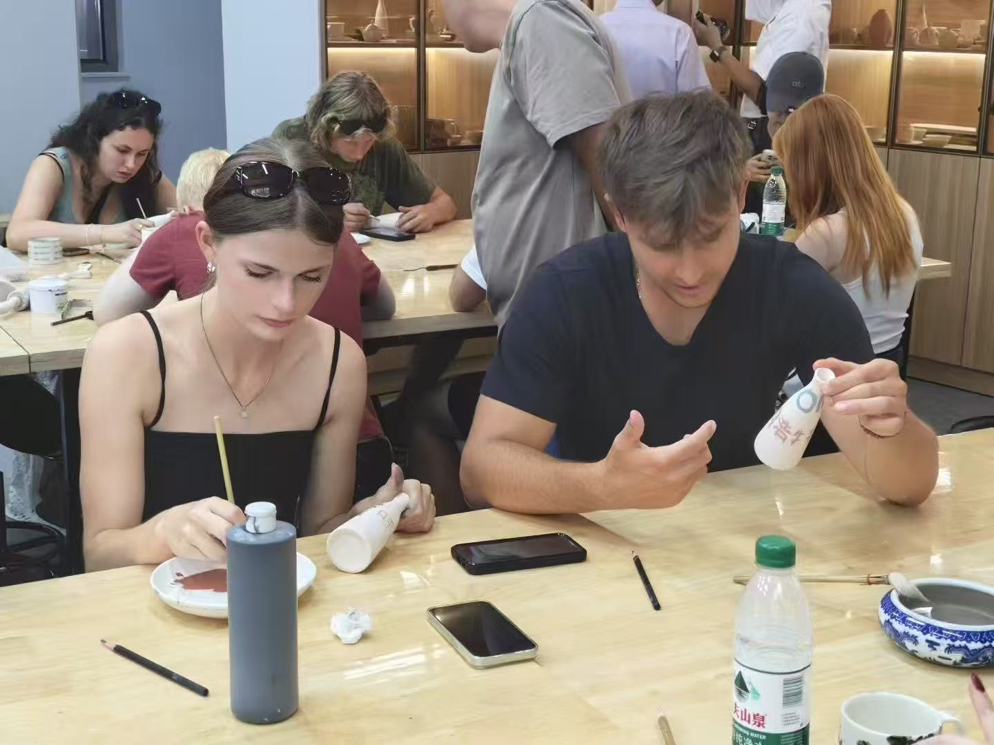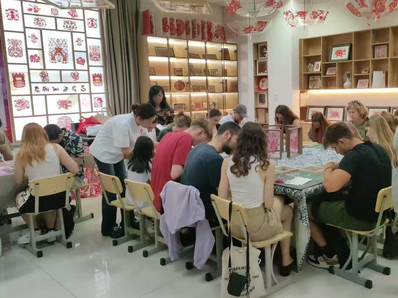 此次活动通过校际合作平台,有效整合双方优质资源,不仅提升了国际文化传播的广度与深度,也为国际师生提供了近距离感受中华文化魅力的窗口。在非遗文化体验环节,外籍师生在专业教师的指导下,亲手体验剪纸的精妙技法与陶艺的独特工艺,现场互动热烈,文化交融氛围浓厚。