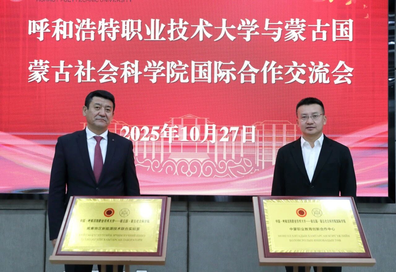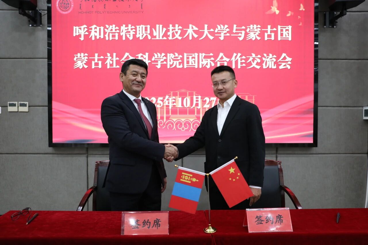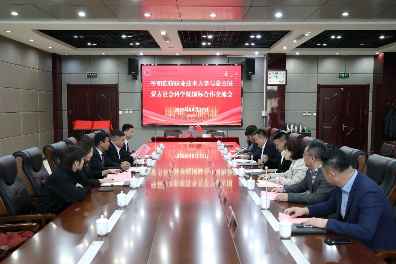 2025年10月27日上午,呼和浩特职业技术大学明德楼4号会议室洋溢着热烈而友好的氛围,为深化中蒙教育合作与交流,呼和浩特职业技术大学与蒙古社会科学院国际合作交流会议在此召开。蒙古社会科学院院长、国际学院院长额·恩和太平,蒙古社会科学院副院长特·呼和牧仁、国际学院外事处长额·吉日嘎拉、国际交流中心主任高宇,呼和浩特市人民政府外事办副主任乌兰图雅、对外交流中心主任武军,呼和浩特职业技术大学党委副书记、校长杨乌日吐,国际教育部主任杨丛林、机械与电力工程系主任殷晓飞以及国际教育部、发展规划与科技处相关同志参加了本次会议。