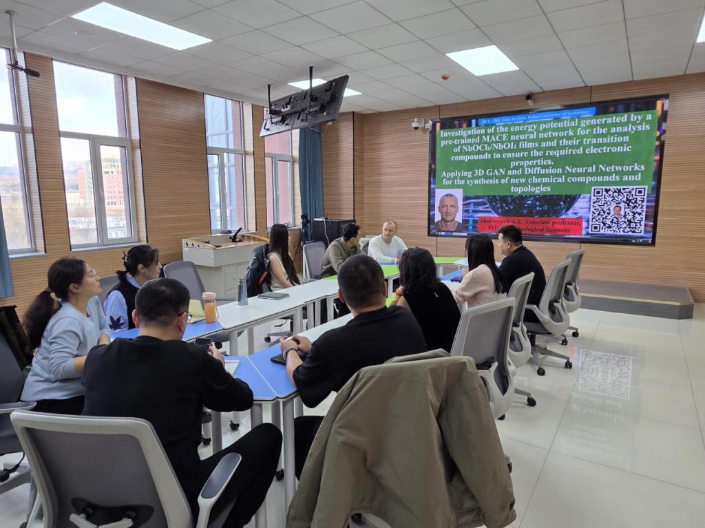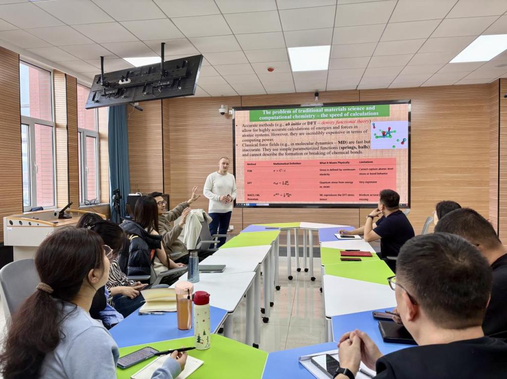 安德烈教授结合最新科研数据与案例,围绕新材料研发与应用、传统材料科学与计算化学问题等,深入剖析了白俄罗斯在该领域的技术优势与研究进展,分享了跨国科研合作的实践路径与经验,并针对前沿技术产业化应用的关键问题与我校教师展开热烈探讨。研讨环节,双方聚焦联合申报国际科研项目、实验数据共享平台建设等,明确了合作方向与下一步工作计划。