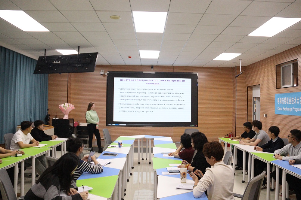 3月17日下午,国际教育学院在AI全景智慧教室举办呼和浩特职业技术大学国际青年人才来华交流项目(CEP)电气自动化专业专题讲座,主题为“电气电路操作安全基础与电气参数测量”。本次讲座由学院综合教研室组织,CEP项目外籍教师伊丽娜(UHLIANITSA IRYNA)主讲,教研室全体教师及电气自动化专业学生代表共同参与。