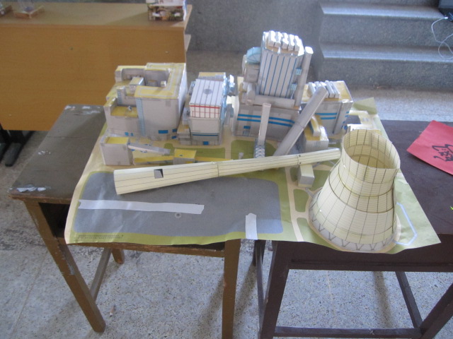 首先是由2011级建筑工程技术(2)班的学生用纸壳做的一个大型发电厂,他们的构思很新颖,也很完美,观众们可以看出设计者的匠心。由2011级会计电算化(1)班刘鹏同学用废弃的光盘、金属易拉罐、饮料瓶设计的变形金刚更吸引观众的目光,这个作品很有趣,也很有特点,让人看出了设计者的别具用心。然后还有的同学用废纸壳做的电视,用废饮料瓶做的比较有特点的杯子等等很多有趣的、有特点、多种类的作品。
