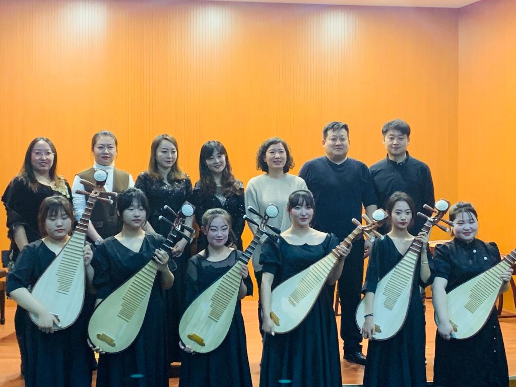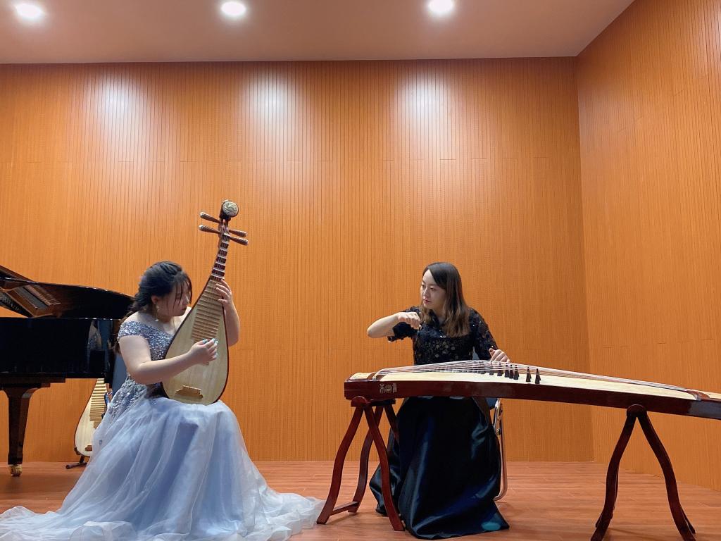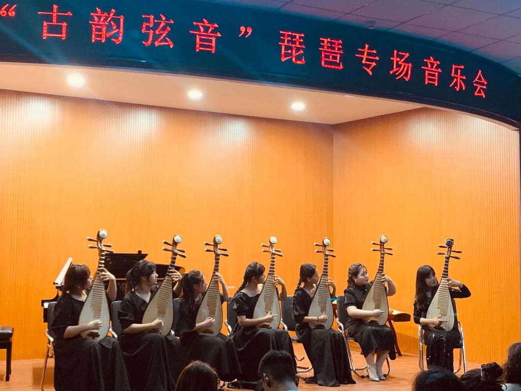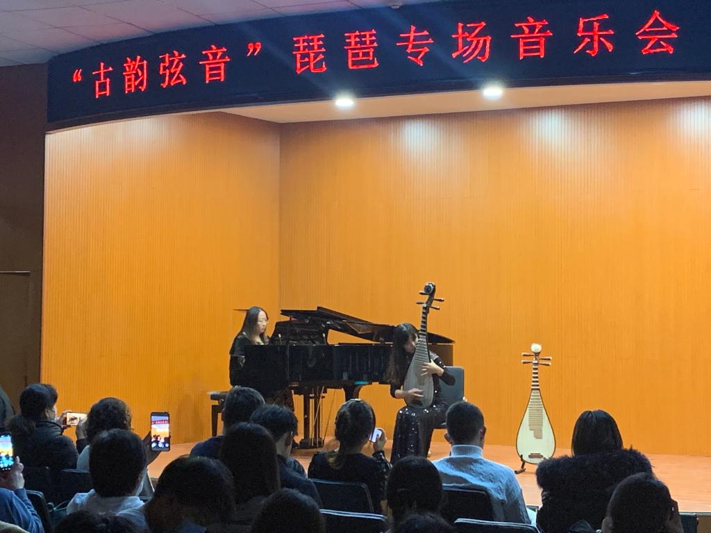 2021年12月2日下午,国际教育部与师范部在艺术中心小音乐厅成功举办了“古韵弦音”琵琶专场音乐会。国际教育部副主任杨丛林、艺术教研室主任贾智慧、师范部器乐教研室主任王莉及学院师生观看了本次音乐会。