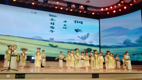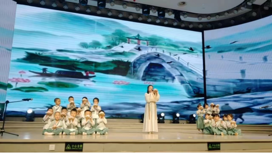 本次展演,小朋友们通过吟诵《忆江南》《小池》《画》《弟子规》《九九歌》等20首古典诗词和蒙学经典,充分展示了《爱上吟诵》幼儿园吟诵课程体系成果。该课程体系是呼和浩特职业学院吟诵项目组经过多年研发而成,集读诵、吟诵、欣赏、教案、课件、课程研发、师资培训七位于一体的幼儿园中华优秀传统文化课程体系。经过在玉泉区思德幼儿园近4年的实验教学,课程体系已基本完善,充分体现了呼和浩特职业学院学前教育专业产学研教学一体化的教学理念。
