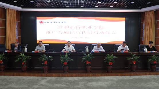 9月16日下午,学院在明德楼一号会议室举办2021年推广普通话宣传周启动仪式,学院党委副书记、院长张玉柱,党委委员、副院长贾润,党委委员、纪委书记田文阁,党委委员、党政办公室主任张瑞斌、宣传统战部负责人刘惠华、人事处处长冀文军,语委会办公室全体成员,各系(部)党总支书记、分管学生工作副主任、团总支书记,各行政处室、系(部)办公室主任、信息员、经常负责文字写作的工作人员和团学干部代表共100余人参加了启动仪式。