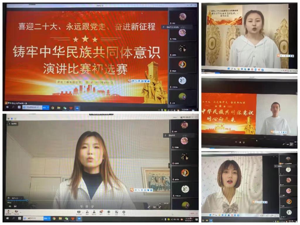 为了紧紧围绕迎接和学习宣传贯彻党的二十大,着力提升广大青年思想政治引领的针对性和实效性,根据自治区团委、呼和浩特职业学院团委《关于开展全区各族各界青少年“喜迎二十大、永远跟党走、奋进新征程”——铸牢中华民族共同体意识主题演讲比赛》的通知要求,建筑工程系团总支于2022年4月9日19:30以线上形式开展了初选赛。建筑工程系副主任李文艳、学团科科长祁子良、团总支书记曹慧娟以及参赛选手参加了本次活动。