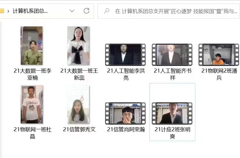 为进一步弘扬习近平总书记提倡的技能强国精神,以实际行动迎接党的二十大胜利召开,激发学生树立技能成才、技能报国的远大理想,计算机系团总支于2022年8月30日开展“匠心逐梦、技能报国”暨“我与榜样共擎旗”线上演讲比赛初赛。担任本次演讲比赛的评委老师有关工委主任郭瑞璋、系党总支书记舒杰、副主任王瑾瑜、学团科副科长兼团总支书记张书恒。
