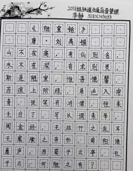 通过此次活动的开展,铁道学子既掌握了党的知识又在同学之中掀起三笔字写作浪潮,通过本次活动,广大师生真正认识到书法基本功的重要性,竖立起规范写字的良好意识,不断提成自我,促文化传承,修内涵底蕴。