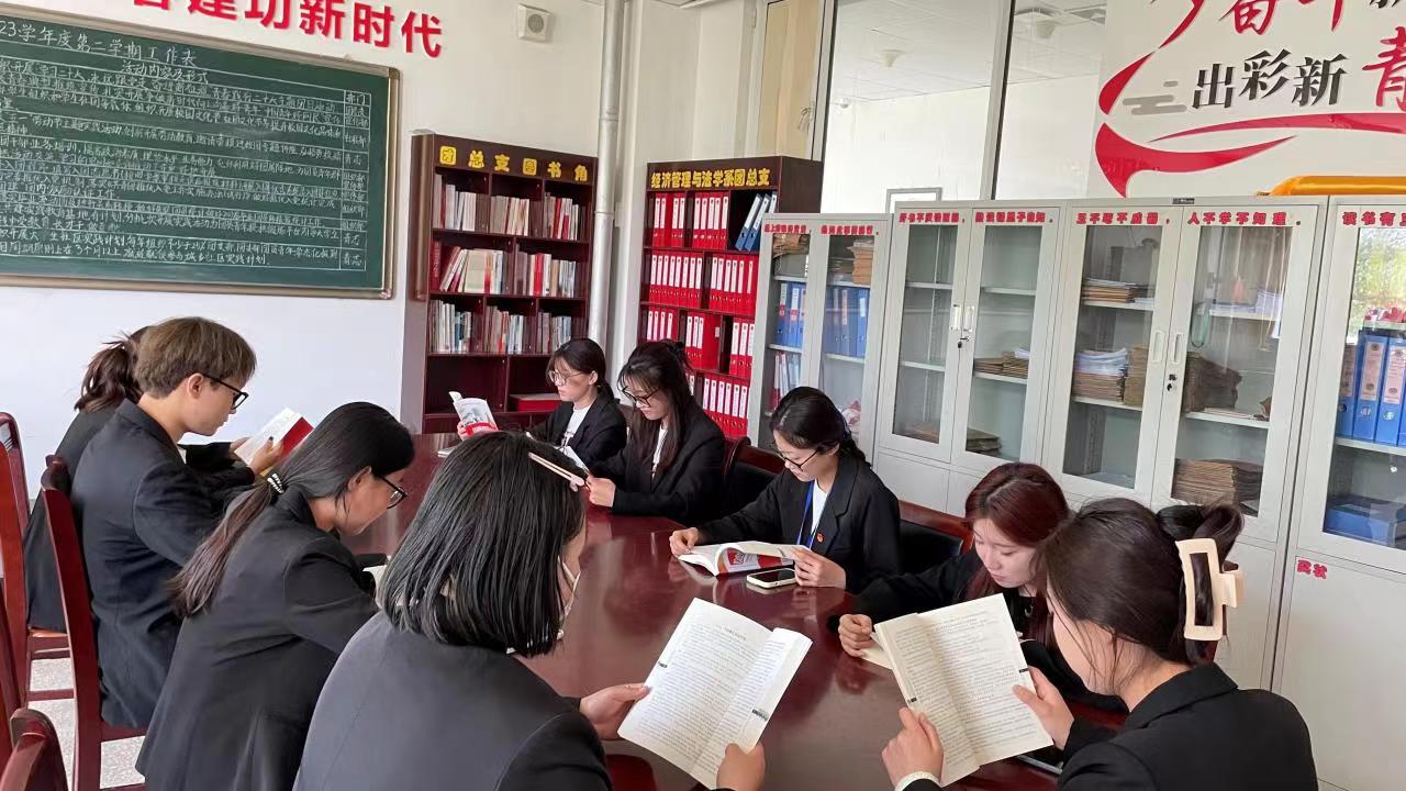 为深入学习贯彻党的二十大精神,以习近平新时代中国特色社会主义思想为指导,围绕落实立德树人根本任务、培育和践行社会主义核心价值观、铸牢中华民族共同体意识,引导激励我系学生爱读书、读好书、善读书,自觉立志为中华民族伟大复兴而读书,经济管理与法学系于2023年6月5日在品学楼321青年之家开展“书声朗朗,书香满校园”主题团日活动。我系15名团学干部参加此次活动。