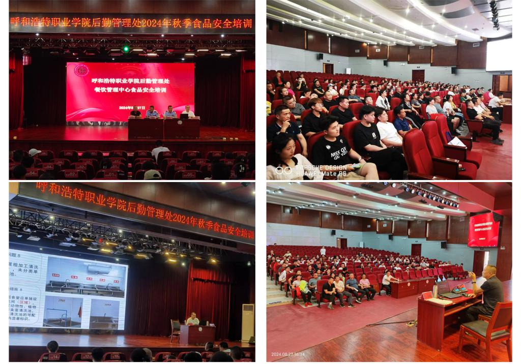 为了做好秋季学期校园食品安全管理工作,提高从业人员规范操作能力和食品安全防范意识,保障全院师生饮食安全,在后勤管理处的工作安排下,8 月27日下午,餐饮管理中心在图书馆二楼报告厅举办了秋季学期食品安全培训会。会议邀请了赛罕区巴彦镇市场监督所所长巴图、监管员籍仁杰,餐饮管理中心主任云志刚、副主任高海峰及工作人员、餐饮公司管理人员、全体食堂从业人员参加了培训会议,会议由云志刚主持。