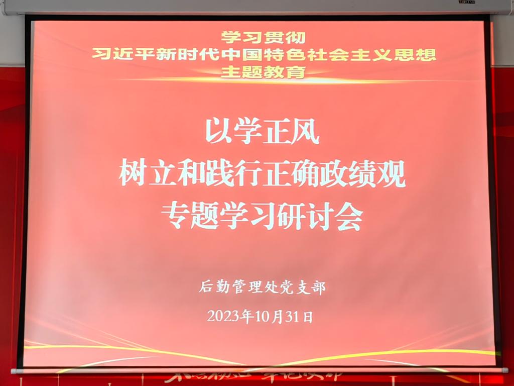 为深入学习贯彻习近平新时代中国特色社会主义思想, 10月31日下午,后勤管理处党支部召开了“以学正风 树立和践行正确政绩观”专题学习研讨会,全体党员干部参会,支部书记郑勇主持会议。