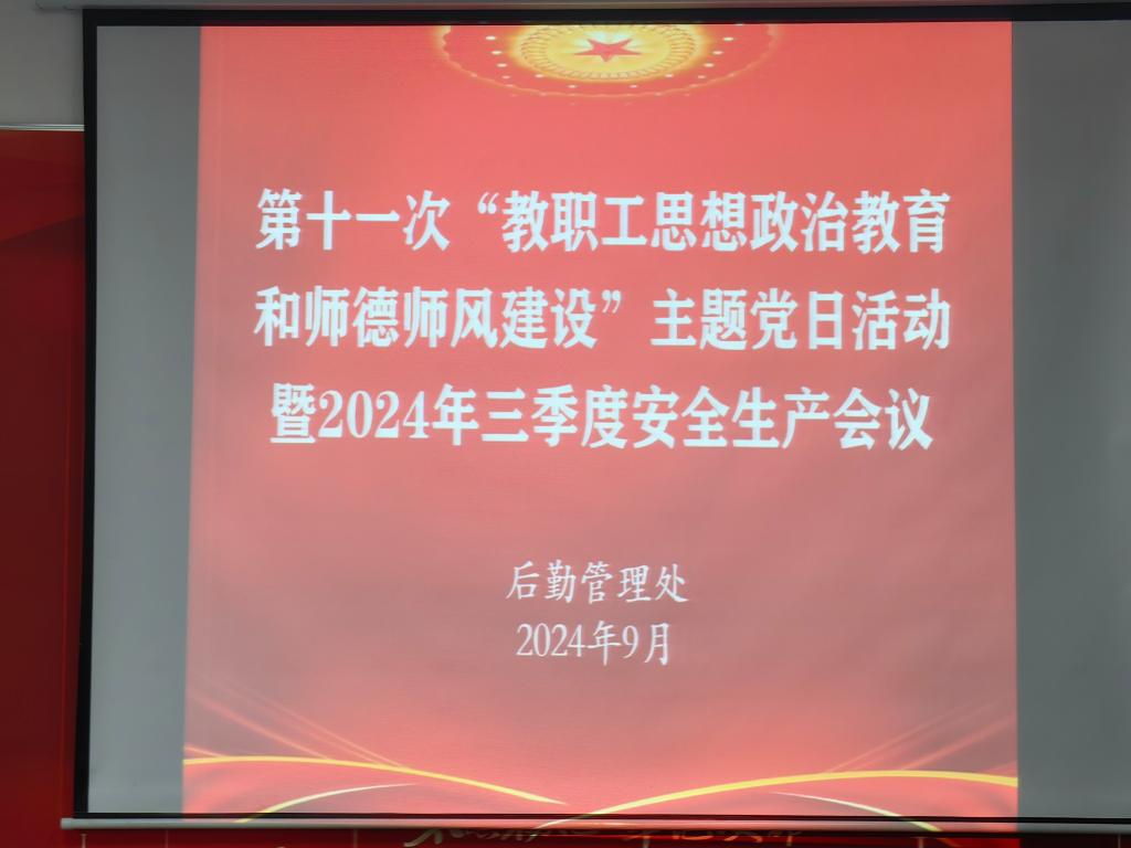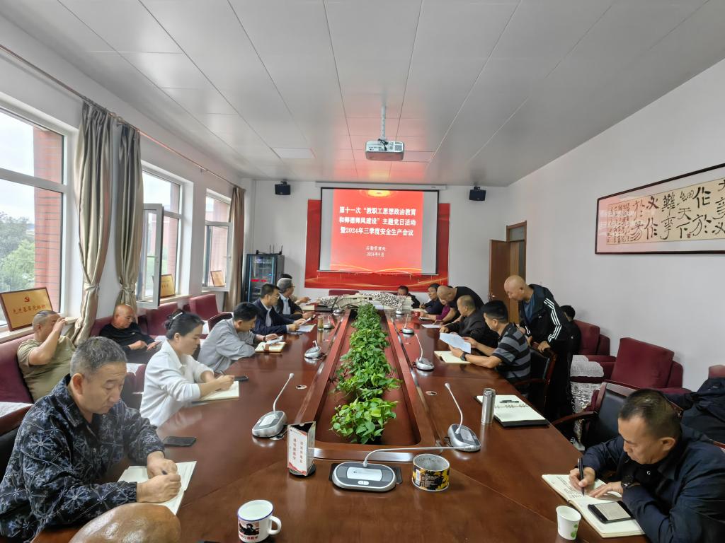 2024年9月13日下午,后勤管理处党支部在后勤楼209会议室开展第十一次“教职工思想政治教育和师德师风建设”主题党日活动暨2024年第三季度安全生产会议。此次活动由后勤管理处党支部书记郑勇同志主持,后勤管理处全体教职工参加。