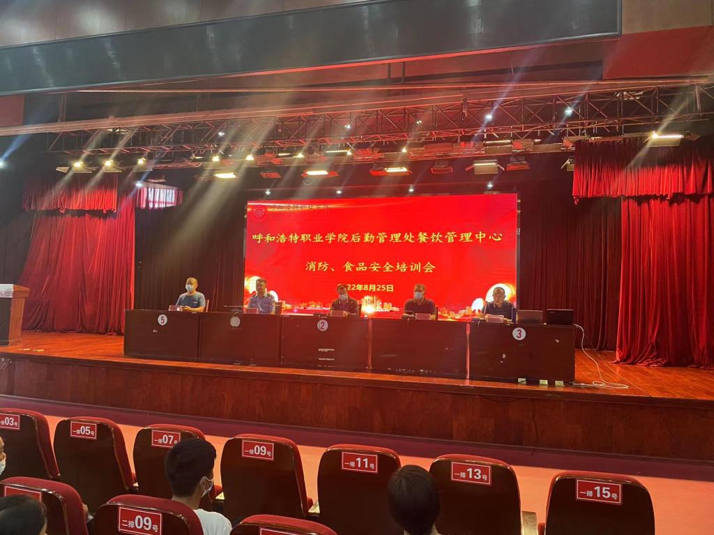 为进一步压紧压实消防安全、食品安全质量,8月25日下午后勤管理处餐饮管理中心组织召开了消防安全、食品安全培训会,内蒙古自治区消防安全培训中心宣传部部长罗斌文、后勤管理处党支部书记郑勇、后勤管理处处长郭旺、餐饮管理中心工作人员及第一餐饮中心和第二餐饮中心全体从业人员等,共计200余人参加了本次培训会,会议由餐饮管理中心主任云志刚主持。