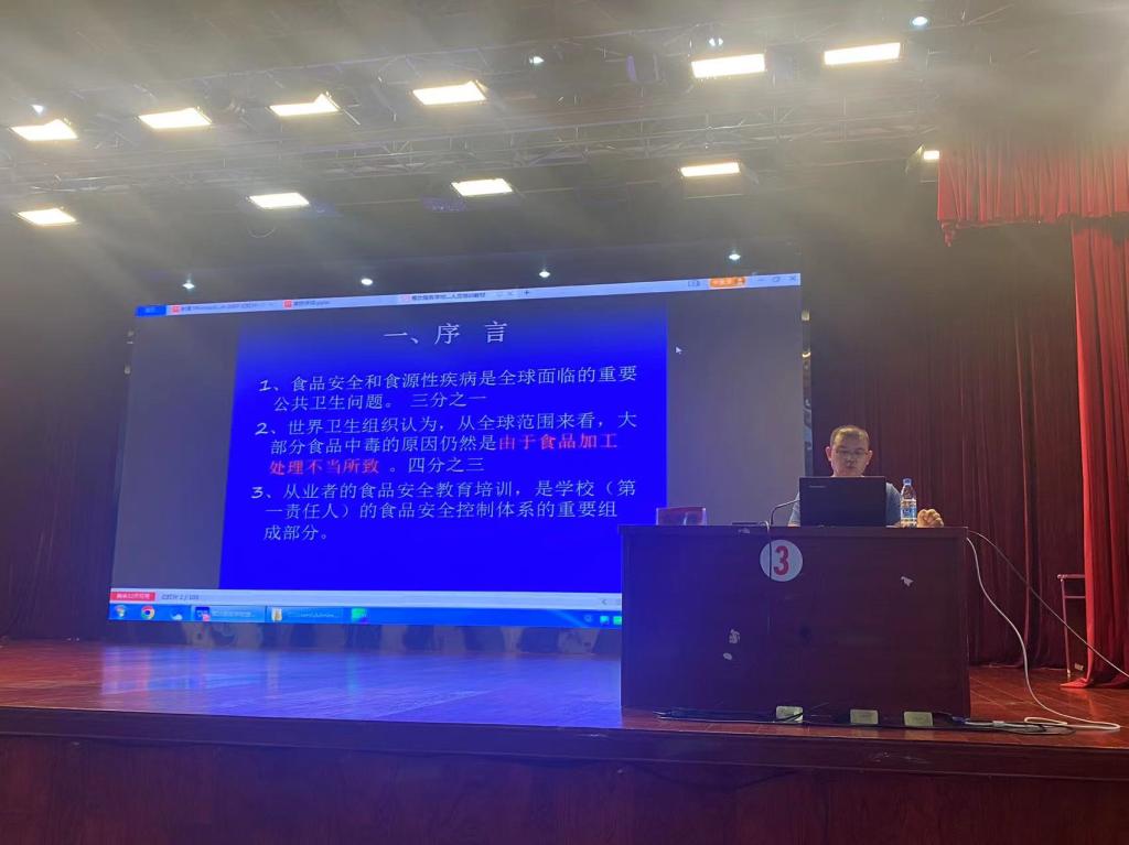 首先云志刚传达了学院党委委员、副院长贾润新学期工作会议精神,要求加强餐饮管理,对进货冷链食品、价格、质量都要严格规范。随后云志刚讲到:开学之际,疫情防控期间食品安全面临的较重压力,为进一步加强消防安全意识和食品安全意识,提高大家的防范意识,营造人人关心,人人守规矩的良好氛围,特此组织了此次培训。