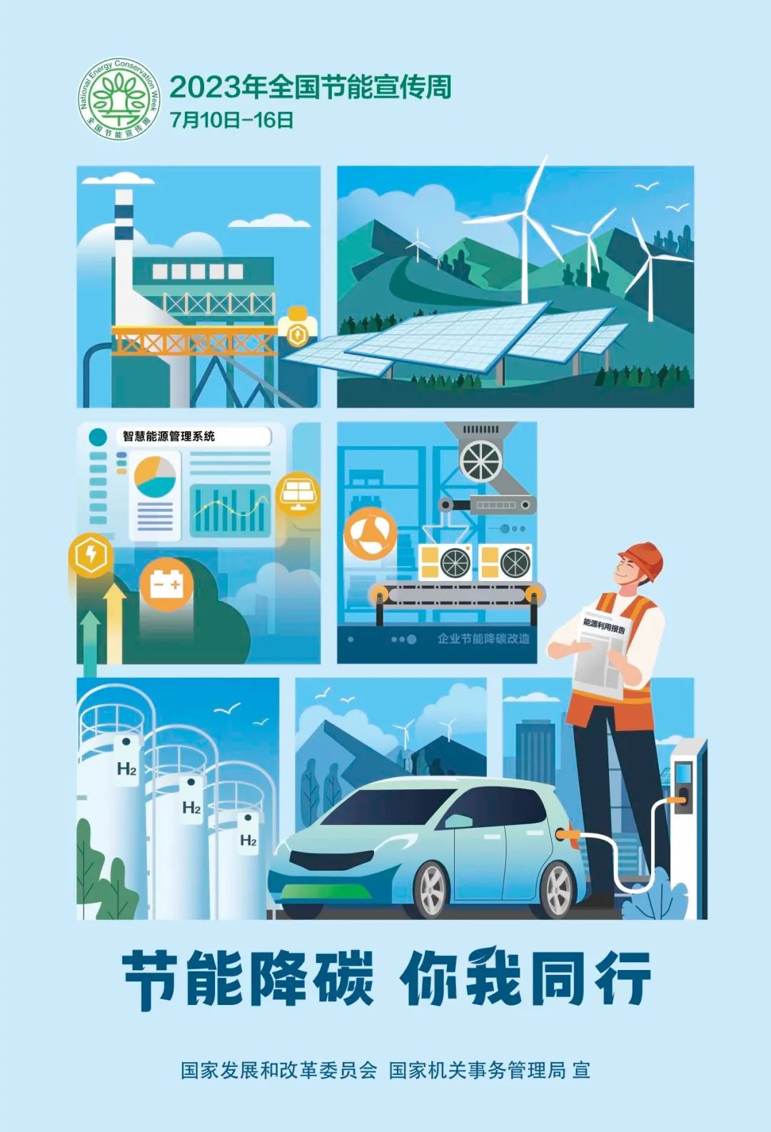 2023年7月10日至16日是全国节能宣传周,活动主题是“节能降碳,你我同行”。7月12日是全国低碳日,活动主题是“积极应对气候变化,推动绿色低碳发展”。