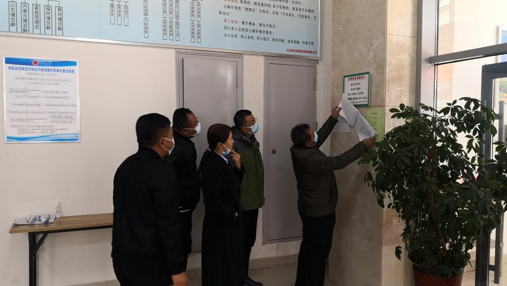 为进一步落实学院疫情防控各项责任,10月22日下午,后勤管理处党支部书记郑勇、处长郭旺、副处长乌尼白乙拉、节能绿化科科长寇文兵、副科长白鹏、综合科科员郑朴与物业公司人员先后对学生公寓、餐饮中心、体育馆、教学楼和实训楼等场所的疫情防控工作进行了检查。