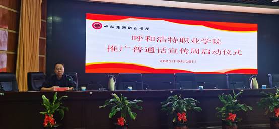 随后,贾润宣读了《呼和浩特职业学院2021年推广普通话宣传周活动方案》,并要求各部门围绕主题,开展多种形式的宣传活动,不断推进宣传手段和服务方式创新,健全全体师生参与机制,结合本部门工作,自发创作传播形式新颖、内容健康的推普宣传资源,提升推普工作影响力。