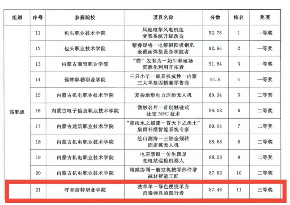 自2022年9月启动以来,全自治区共有40个项目入围决赛,其中中职组10项,高职组20项,应用技术型本科组10项。最终,师范部《洗羊羊——绿色便捷羊身消毒器具的践行者》入围决赛,荣获高职组三等奖。