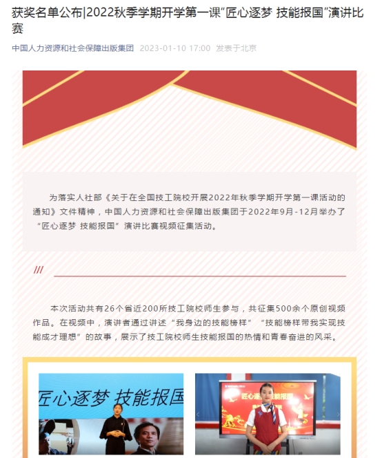 在院级比赛环节,各系部推荐参赛选手精心准备,最终有25个优秀作品获得学院表彰。其中荣获院级比赛前三名的优秀选手参加了全国决赛。决赛共有26个省市自治区近200所技工院校师生参与,共征集500余个原创视频作品。演讲者通过讲述“我身边的技能榜样”“技能榜样带我实现技能成才理想”的故事,展示了技工院校师生技能报国的热情和青春奋进的风采。经专家评审,本次活动评选出10个一等奖作品、20个二等奖作品和49个三等奖作品。我院铁道系2021级动车组检修技术一班尹思宇同学荣获全国三等奖。优秀演讲视频将在技工教育网等平台展示,优秀演讲稿还将在《职业》杂志等部属媒体刊发。