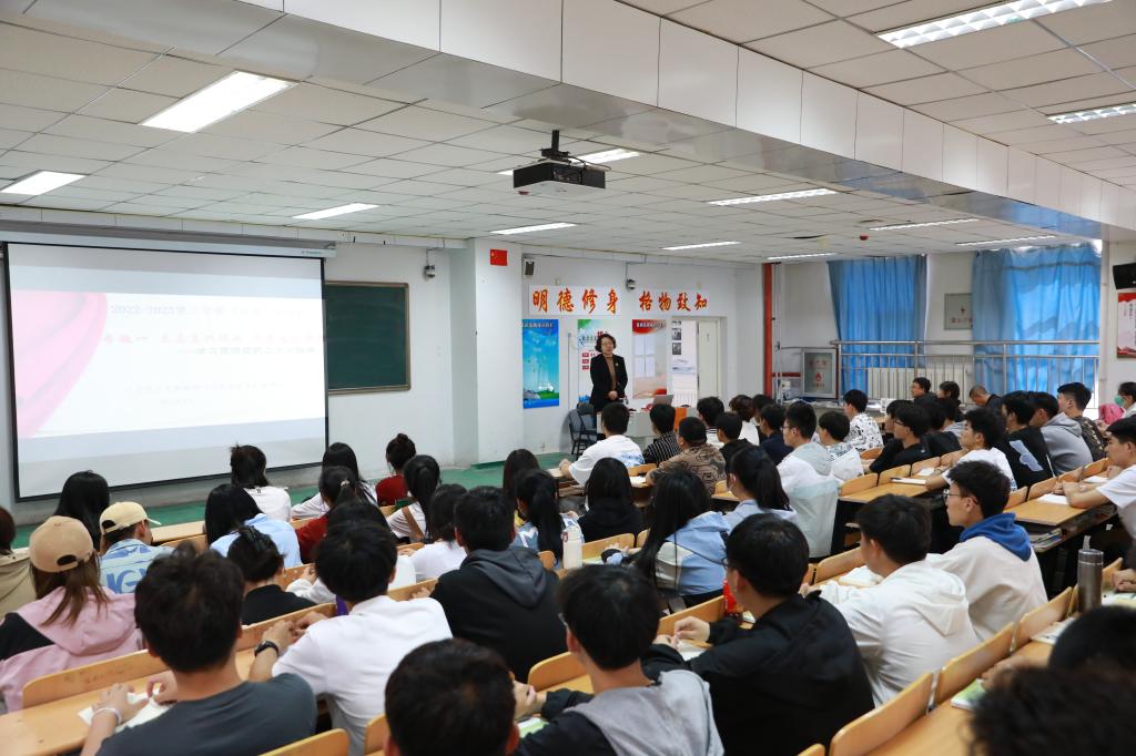 为全面贯彻落实党的二十大精神,贯彻落实中共中央办公厅、国务院办公厅《关于深化新时代学校思想政治理论课改革创新的若干意见》《教育部关于加强新时代高校“形势与政策”课建设的若干意见》等文件精神,充分发挥领导干部在高校思政课建设中的示范引领作用,教育引导学生正确认识国内外形势,深入理解党的二十大做出的战略部署,以中国式现代化推进中华民族伟大复兴,增强学生爱国情和报国志,2023年5月31日下午、6月1日下午,呼和浩特职业学院党委书记曹红以“立志复兴伟业,踔厉奋发前行”为题,为2022级铁道运营3、4班和2022级计算机物联网应用1、2班全体同学上了一堂精彩的党的二十大专题思政课。马列部班子成员、教研室主任、部分思政教师共同聆听了讲座。