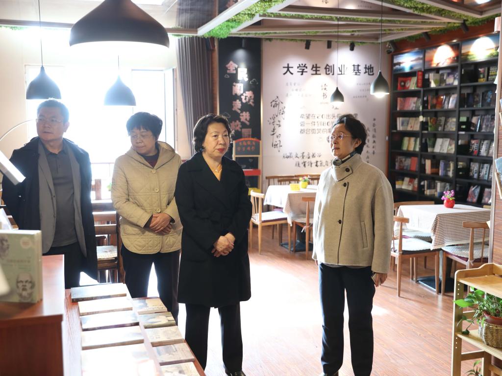 新娜一行到学院图书馆多功能阅览室、学院新华书店、大学生思想政治教育基地进行参观。在明德楼4号会议室召开调研座谈。与会双方就学院教材管理、教材采购、图书采购管理、读书日活动及新华书店进校园合作项目、校企合作、文创产品开发等方面情况进行深入交流。