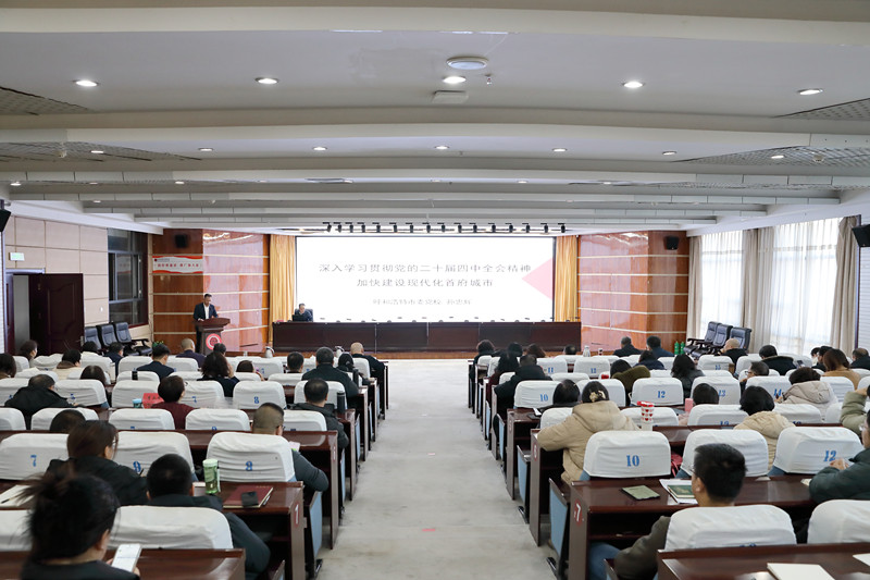 报告会上,孙忠辉围绕党的二十届四中全会召开的背景、重大意义、核心要义与实践要求进行了系统阐述。深入解读了《中共中央关于制定国民经济和社会发展的第十五个五年规划的建议》,对“十五五”时期基本实现社会主义现代化的发展目标、战略举措等作了深入浅出的分析。孙忠辉结合国内外发展大势与内蒙古自治区、呼和浩特市的实际发展情况,对如何全面贯彻全会精神书写中国式现代化内蒙古新篇章、建设现代化首府开展了一系列生动而深刻的诠释。