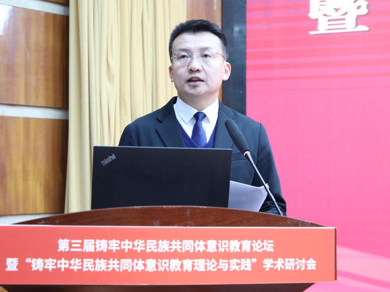 内蒙古自治区教育厅党组成员、副厅长张俊喜,呼和浩特市委副书记、政法委书记孙昊为开幕式致辞。会议举行了特聘教授聘任仪式,为徐平、陈立鹏、李春林、陈智、包路芳、袁梅等位教授颁发自治区铸牢中华民族共同体意识培育基地特聘教授证书。