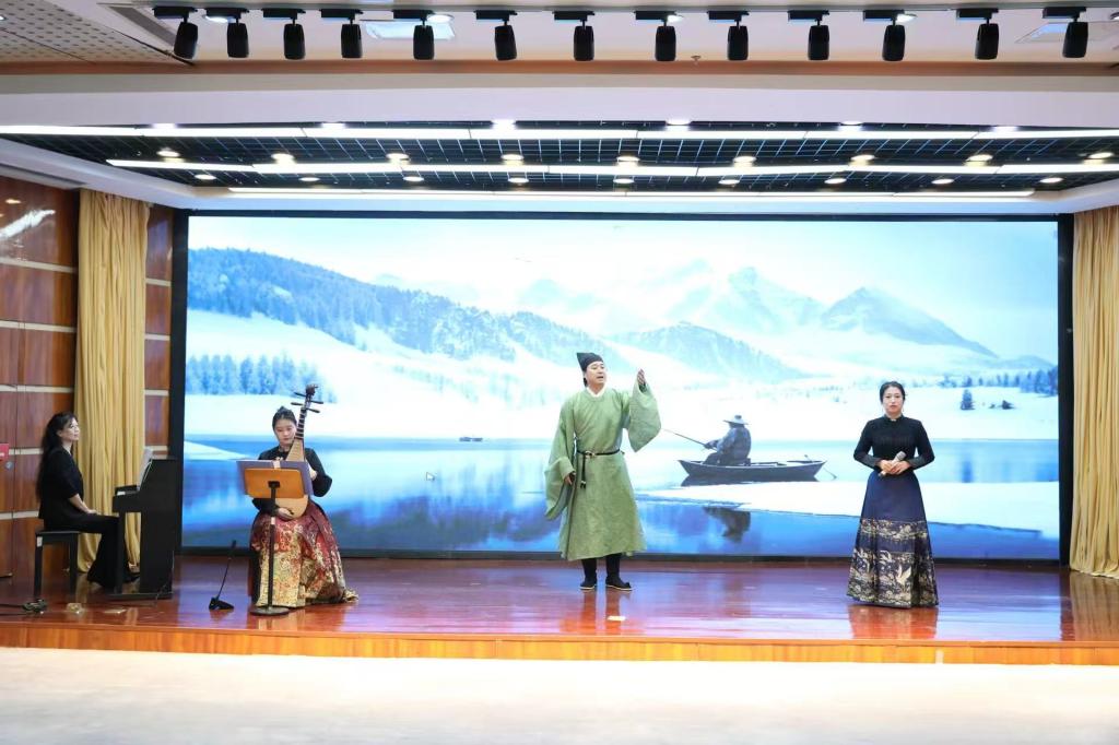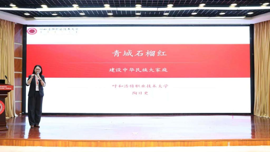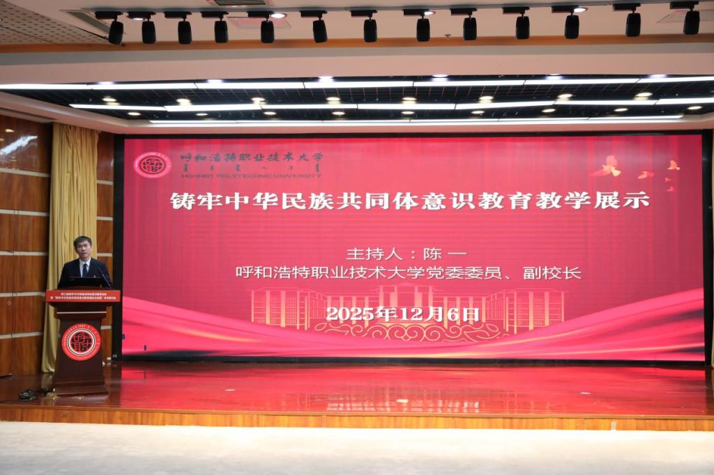 在铸牢中华民族共同体意识教育教学示范展示环节,马克思主义学院青年教师陶日更作“青城石榴红---建设中华民族大家庭”教学展示、呼和浩特职业技术大学王浩东吟诵工作室作“吟中华诗韵 育同心之人”的展示。