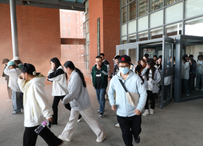 讲座结束后,现场师生立即开展应急疏散演练,严格按照讲座所学知识,有序撤离至图书馆广场,同步开展灭火实操演练。在教官的指导示范下,师生们踊跃参与,上手操作,巩固了灭火器的使用技能,真正实现了“学用结合、学以致用”的目标。