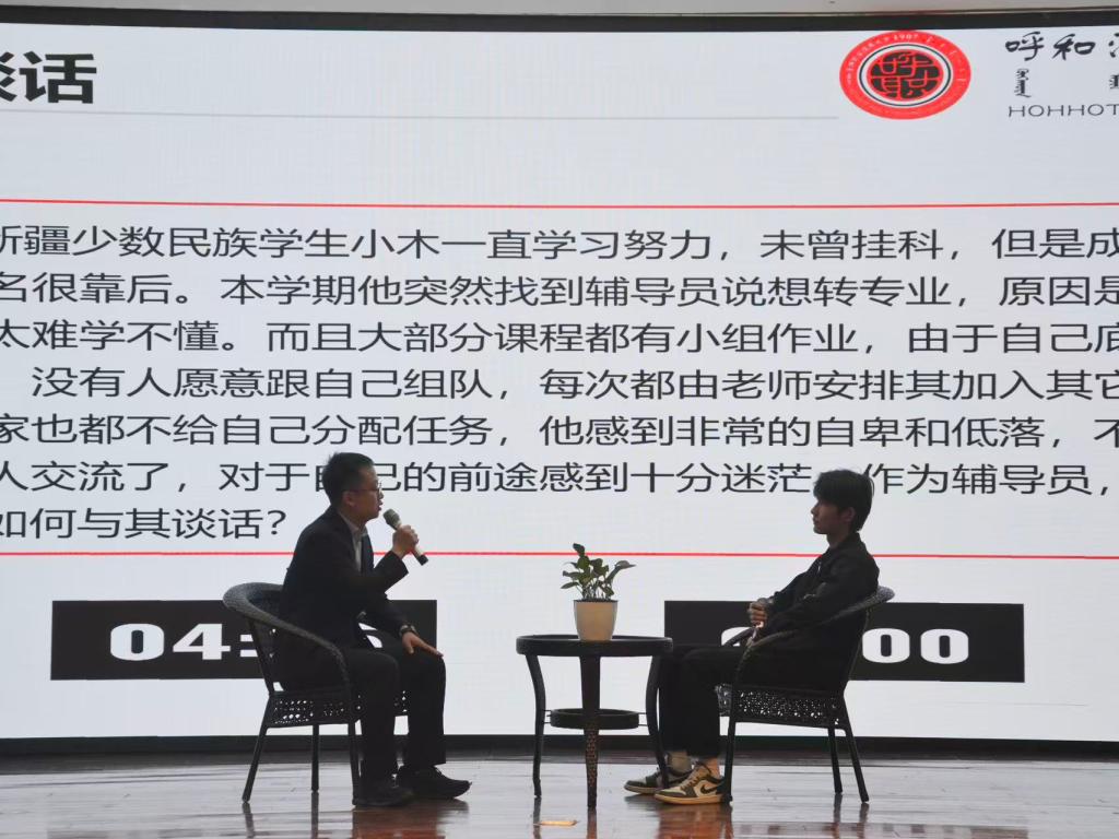 为深入推进辅导员队伍职业化、专业化建设,全面提升辅导员的理论素养、业务能力与育人水平,4月28日,呼和浩特职业技术大学第十一届辅导员素质能力大赛决赛在明德楼1号会议室顺利举行。大赛邀请内蒙古建筑职业技术大学党委学生工作部(处)长韩和平、内蒙古商贸职业学院学生工作处(人武部)处长马丽敏、内蒙古化工职业学院学生工作处副处长白艳姝、内蒙古电子信息职业技术学院学生工作处副处长张慧超及获得2024年内蒙古自治区第九届全区高校辅导员素质能力大赛一等奖、基础知识测试单项奖的内蒙古大学法学院团委书记兼学工办主任杨晓华担任评委。校党委副书记白海林、学生工作部部长魏好毕斯、学生工作部副部长刘丽珍、朱海旺、高强,各学院(部)分管学生工作副主任、学团科科长及副科长、全体专兼职辅导员到场观摩。