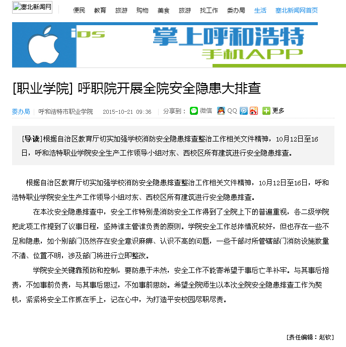塞北新闻网: 呼职院开展全院安全隐患大排查