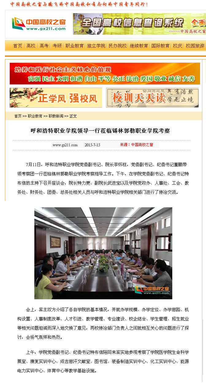 中国高校之窗:呼和浩特职业学院领导一行莅临锡林郭勒职业学院考察