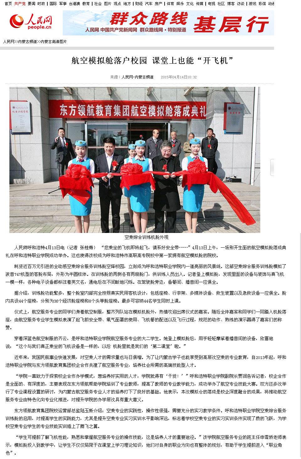人民网:航空模拟舱落户校园 课堂上也能“开飞机”