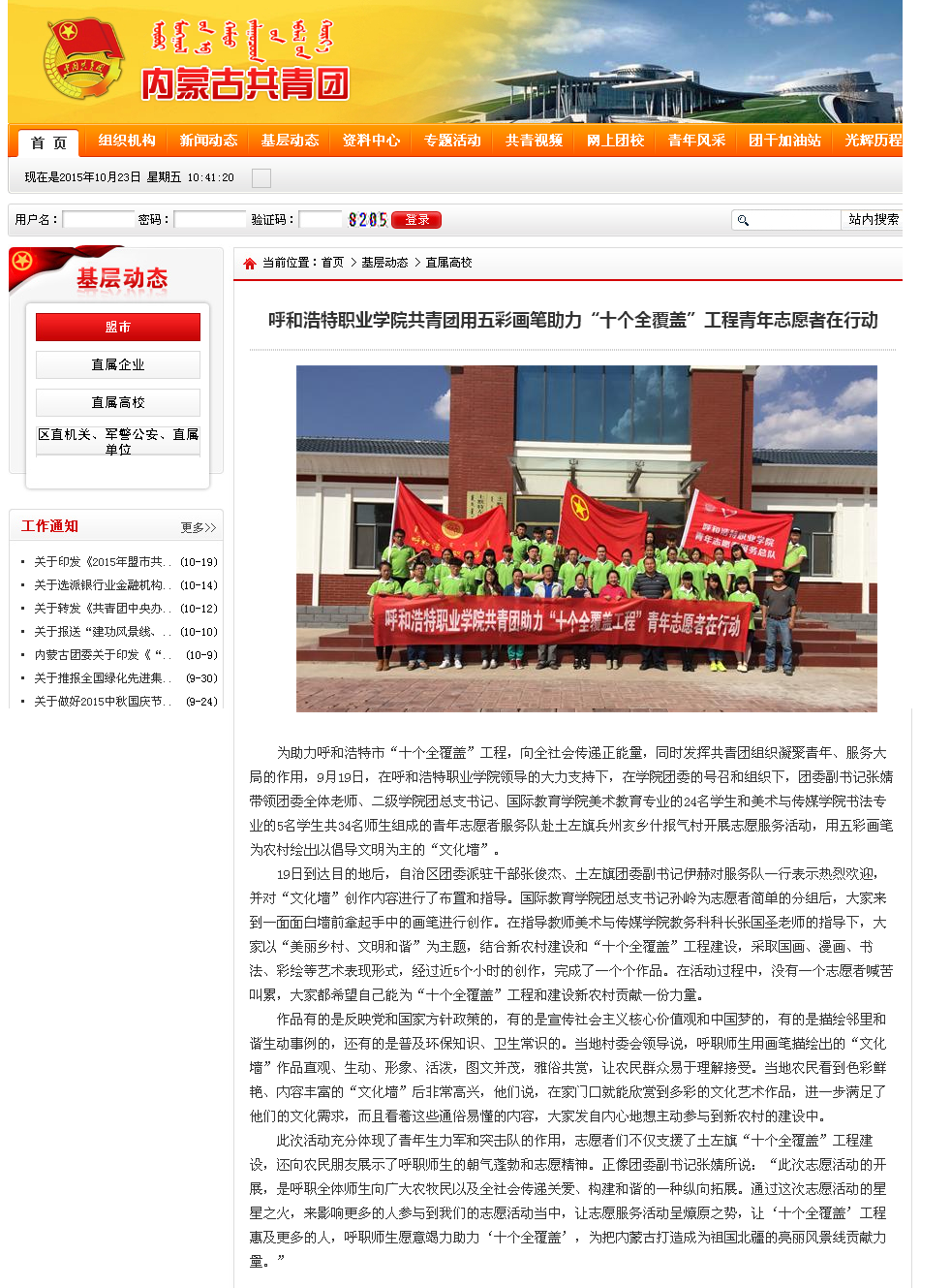 内蒙古共青团:呼和浩特职业学院共青团用五彩画笔助力“十个全覆盖”工程青年志愿者在行动